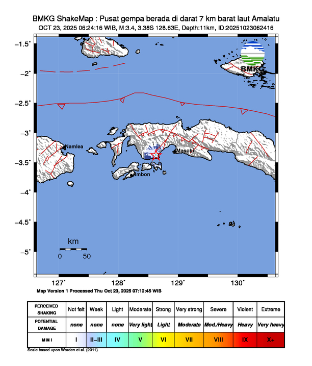 Pusat gempa berada di darat 7 km barat laut Amalatu